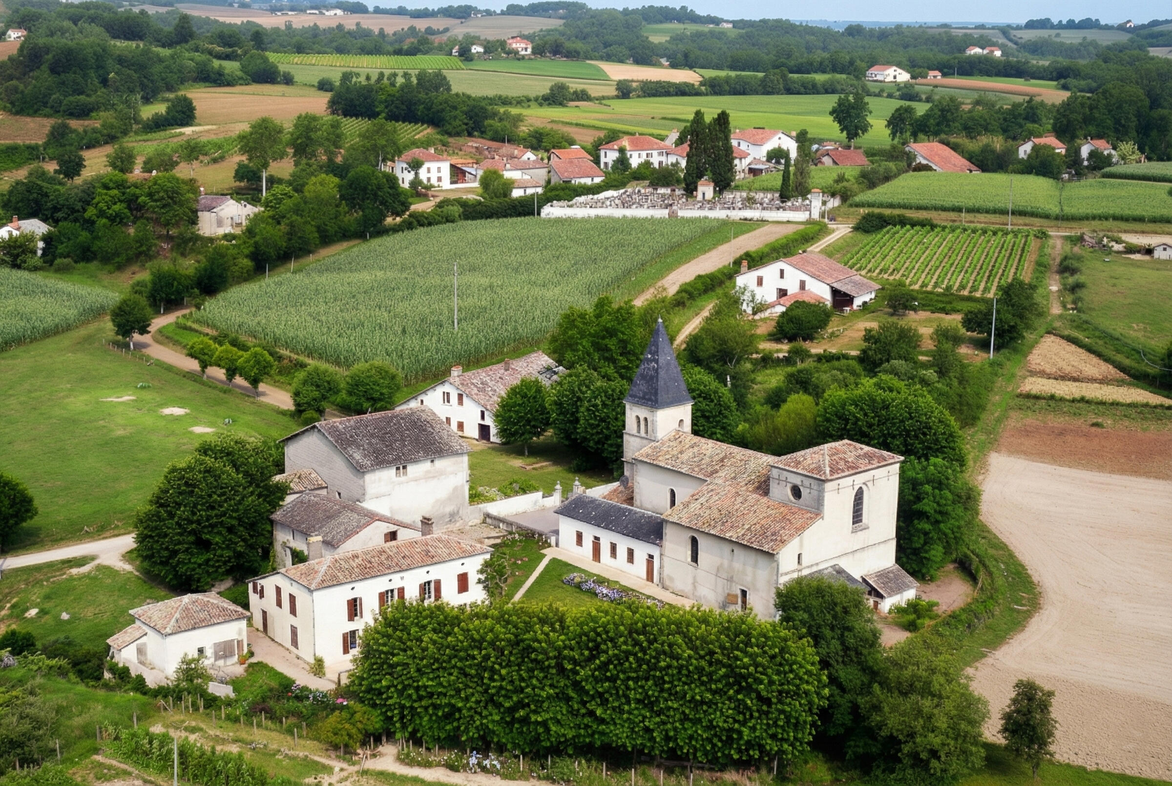 Village landais, où la nature et la vie rurale se rencontrent harmonieusement.